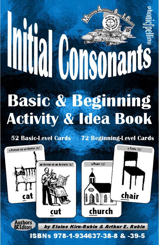 (In a comparable but more challenging format, the Intermediate & Advanced-Level INITIAL CONSONANTS package [ISBNs 978-1-934637-40-1 & -41-8] contains 166- and 244-Card Packs, respectively, with an 88-page Activity & Idea Book. It differs from the lower-level product in the "difficulty" of its items and suggested activities.)