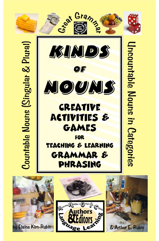 Suggested cooperative or competitive activities/games for teaching/learning kinds of nouns include Classifying Nouns, Sentence Card Games, Noun Memory, Noun Association Chains, Clutter Collections, and Noun Mini-Talks & Writings. Step-by-step instructions for setting up, conducting, and providing feedback on such activity are in the Kinds-of-Nouns Activity & Idea Book. A versatile 104-card Kinds-of-Nouns Picture Pack is among the currently available classroom-ready materials accompanying the book. It will save materials developers time and energy in trying out some of its generic ideas.