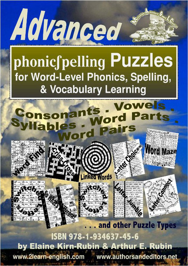 The design and content of these engaging and entertaining puzzles will appeal to advancing learners that already "love" vocabulary, that want to "know it all," and/or that would like to "systematize" their previously acquired knowledge of pronunciation, spelling, and other word features. The attractive and versatile, one- or multi-use pages will not only make good use of their enthusiasm for language but will add to it.