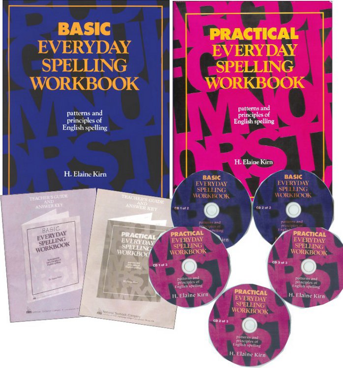 Spelling WORKBOOKS 1 & 2 Package = 94-Page Basic & 126-Page Practical Student Texts with Five CDs + Both Instructor's Guides